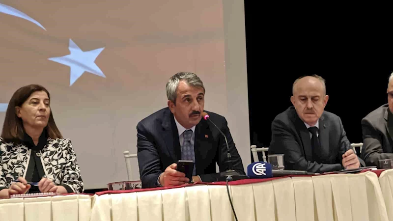 Edirne Valisi Yunus Sezer’e muhtarlar toplantısında Akhoca Köyü Muhtarı Emrullah Meriç şiir okudu.