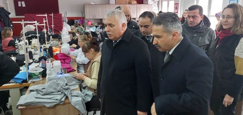 Tekirdağ Valisi Aziz Yıldırım, beraberinde Ergene Kaymakamı Mehmet Emin Taşçı ile birlikte Ergene Halk Eğitim Merkezi’nde afetzedelerin kullanması için polar battaniye, atkı ve bere üreten kursiyer kadınlarla sohbet ederek de bilgi aldı. Yıldırım, özverileri sebebi ile teşekkür ederek kolaylıklar diledi. Ergene Halk Eğitimi Merkezinde ilk olarak battaniye, atkı, boyunluk ve bereden oluşan toplamda bin 200 parçalık yaşam malzemesi paketlenerek yardım tırlarına yüklendi. Öte yandan Yıldırım Beyazıt Han Ortaokulu Spor Salonunda gün içerisinde toplanan yardımlar, 2 tır ve 3 adet minibüse yüklenerek depremzedelere ulaştırılmak üzere yola çıkarıldı.