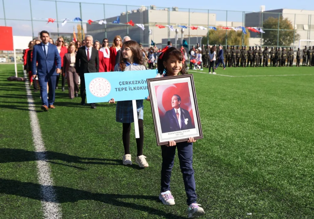 Günün anlam ve önemine ilişkin konuşmaların yapılmasının ardından şiirler okundu. Daha sonra 29 Ekim Cumhuriyet Bayramı dolayısıyla ilçe genelinde düzenlenen yarışmalarda dereceye giren öğrencilere ödülleri verildi. Ardından Sakatlar Derneği Çerkezköy Şubesi ve Çerkezköy Belediyesi Hak Oyunları Ekibi hazırladıkları gösterileri sundular. Çerkezköy TSO Anadolu Lisesi tarafından hazırlanan müzik dinletisinin ardından Çerkezköy Halk Eğitim Merkezi tarafından hazırlanan Tekirdağ Yöresi Halk Oyunları ve Zeybek gösterisi sunumu yapıldı. Çerkezköy Ticaret ve Sanayi Odası Lisesi Bando Takımının gösterisinin ardından Geçit Töreni ile 29 Ekim Spor Kompleksi’ndeki kutlamalar sona erdi.