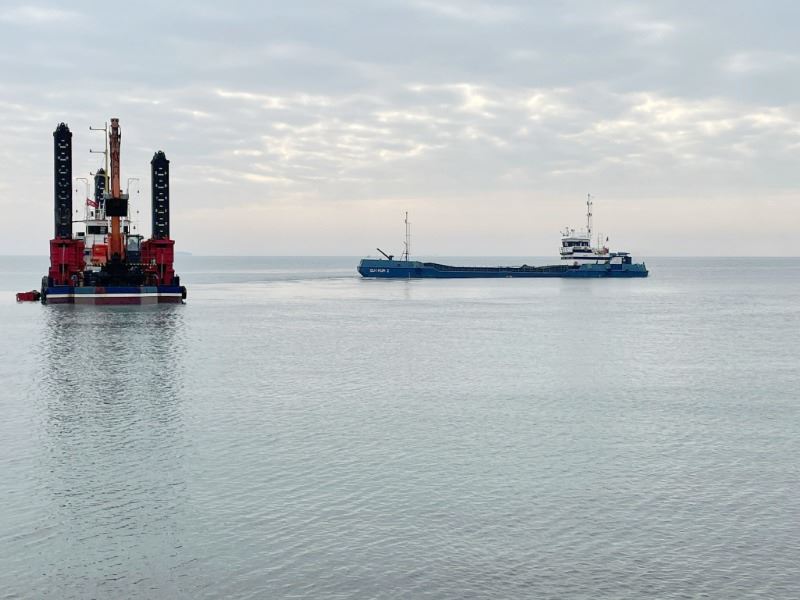 Limanı kapatan taş çakıllarını temizleme çalışması başlatıldı.