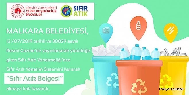 Malkara Belediyesi, ?Sıfır Atık Projesi? kapsamında hayata geçirdiği Sıfır Atık Yönetim Sistemi ile Çevre ve Şehircilik Bakanlığı Tekirdağ İl Müdürlüğü tarafından Sıfır Atık Belgesi almaya hak kazandı.
