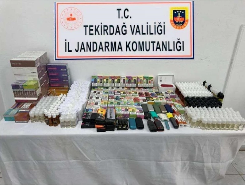 Tekirdağ’ın Malkara ilçesi Camiatik Mahallesinde alınan duyum üzerine H.Y. isimli şahsın iş yerinde, aracında, ev ve eklentilerinde arama yapıldı. Jandarma tarafından yapılan aramada, 88 adet değişik markalarda elektronik sigara, 416 paket elektronik sigara tütünü 346 adet elektronik sigara likiti, 15 kutu elektronik sigara yedek parçasının ele geçirildi.