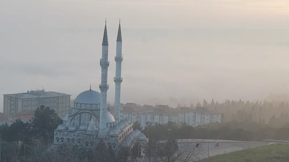 Marmara Denizi ve Tekirdağ sisle kaplandı. Yoğun sis nedeniyle adeta göz gözü görmezken, deniz sis nedeniyle kayboldu.