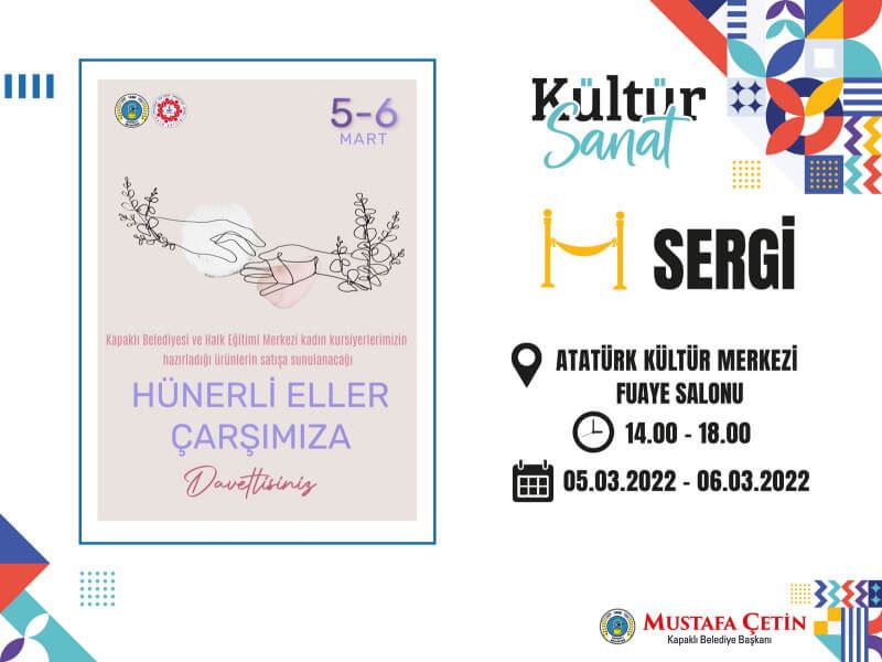 Kapaklı Belediyesi ve Kapaklı Halk Eğitimi Merkezi kadın kursiyerlerinin hazırladığı birbirinden güzel el emeği göz nuru ürünler Hünerli Eller Çarşısı’nda satışa sunulacak. 5-6 Mart tarihleri arasında Atatürk Kültür Merkezi’nde düzenlenecek Hünerli Eller Çarşısı 14.00 ile 18.00 saatleri arasında ziyaret edilebilecek.