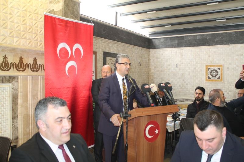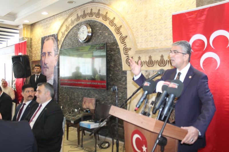 Ersoy’dan sonra kürsüye gelen MHP Genel Başkan Yardımcısı ve Erzurum Milletvekili Prof. Dr. Kamil Aydın, “6 parti bir araya geldi. Bir birine benzemezler bir araya gelmişler. Niye bu kadar Cumhurbaşkanlığı karşısında tepkiler oluştu, gayriahlaki yapılara ve muamelelere kaldık? Nedir Cumhur İttifakı? Cumhur İttifakı açık ve net. Bizim bir aidiyetimiz, vatana millete bağlılığımız bizi buraya getirdi. Yani ittifak kuracaksanız bağlılığınız olması lazım. Ben bu işi bunlarla yaparım ama ideallerini, hedefleriniz, beklentileriniz farklı olursa onun adı çıkar olur. İşte Cumhur İttifakı’nın karşısında, sayın Genel başkanımızın dediği ‘Zillet İttifakı’ dememizin nedeni bub. Çünkü ortak bir payda yok. Masanın şeklini bile kararlaştıramıyorlar, kim neyi alacak onu bilmiyorlar ve 3 yıldır sizi oyalıyorlar. Hükümet ne yapıyorsa, hangi bakanlıkları çalıştırıyorsa, aynı şekilde sorumluluk dağıtıp bir şeyler yapmak değil mi hedefimiz. Peki bunu yapıyorlar mı? Hayır. Çerkezköy için bu milleti kalkındıracak, şunu yaptılar ama biz bunu yapsak daha iyi olur dediler mi? Ölüm dilediler ya utanmadan. Bir mümin ölüm dilemez. Cumhurbaşkanımıza beddualar ettiler, genel başkanımızın rahatsızlığında ahlaksız ifadelerde bulundular. Bu kadar kinciler. Bizler onlar gibi olamayız. Sayın genel başkanımız her defasında ne diyor ‘Tek devlet, tek millet, tek bayrak’ diyor. 15 Temmuz’da iki lider yola düşmeseydi, genel başkanımız ‘Yakın ışıkları, bu millet sahipsiz değildir, bombalanacaksa bizim genel merkezimiz bombalansın’ dedi. Ve başbakana ulaştık Binali Bey’e biz milletimizin arkasındayız, seçilmiş hükümeti böyle haince yok etmeye kalkışan kişilerin karşısındayız dedi. Sonrasında Cumhurbaşkanımızın hepimizi sokağa davet emesiyle tankın altına da yatıldı, tek vatan, tek millet, tek bayrak, tek devlet için mücadele edildi. Biz bunları anlatmak için buradayız. Kastımız kimseye hakaret kötü söz değildir.”diye konuştu.