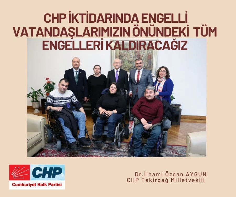CHP (Cumhuriyet Halk Partisi) Tekirdağ Milletvekili İlhami Özcan Aygun, 3 Aralık Dünya Engelliler Günü nedeniyle yayımladığı mesajında, “CHP iktidarından engelliler önündeki tüm engelleri kaldıracağız.”dedi.