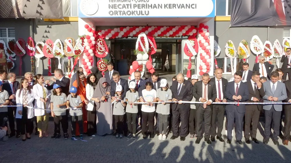 Hayırsever işadamı Aydın Kervancı’nın merhum babası ve annesi adına yaptırdığı Necati-Perihan Kervancı Ortaokulu’nun açılışı, Milli Eğitim Bakanı Yusuf Tekin, Tekirdağ Valisi Recep Soytürk, Çorlu Kaymakamı Murat Eren, Tekirdağ Milletvekilleri Mestan Özcan, Gökhan Diktaş, protokol üyeleri, hayırsever Kervancı ailesi ve vatandaşlar ile öğretmen ve öğrencilerin katılımıyla gerçekleştirildi.