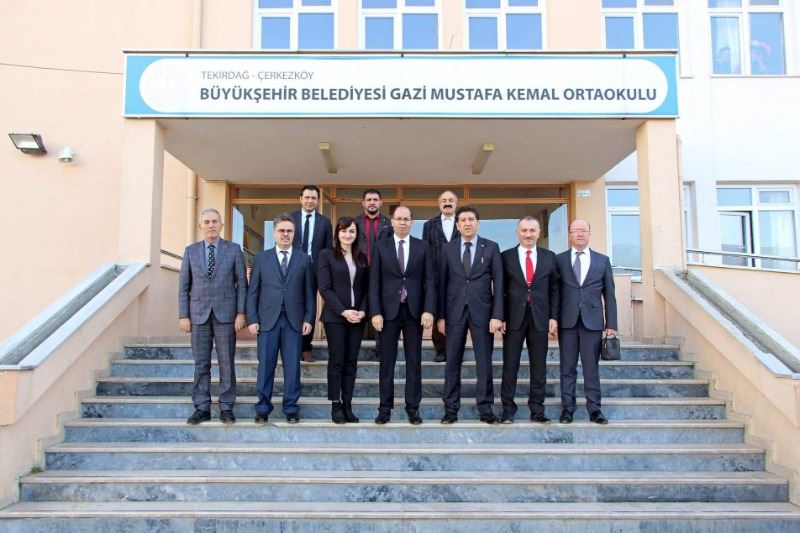 Milli Eğitim Bakanlığı Temel Eğitim Genel Müdürü Tuncay Morkoç, eğitim öğretim faaliyetlerini yerinde görüp incelemelerde bulunmak üzere Çerkezköy Kızılpınar Bölgesi'nde bulunan Büyükşehir Belediyesi Gazi Mustafa Kemal Ortaokulu'nu ziyaret etti.