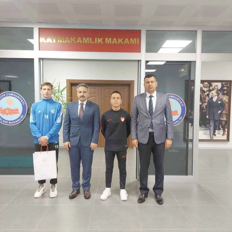 Milli Takım Havuzuna seçilen Ergene Velimeşespor’un genç futbolcusu Yücel Yıldırım beraberinde antrenörü Salim Biçer ve Ergene Gençlik ve Spor İlçe Müdürü Şenol Doğramacı ile Ergene Kaymakamı Mehmet Emin Taşçı’yı ziyaret ederek başarısını paylaştı.