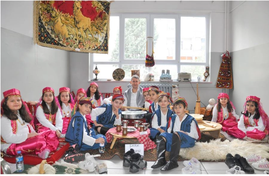 Tekirdağ’ın Saray ilçesinde minik öğrenciler, yöresel kıyafetler ve yerel ürünler ile 'Yerli Malı Haftası' etkinliği gerçekleştirdi.