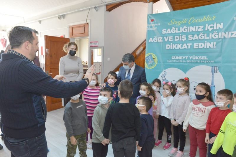 Süleymanpaşa Belediyesi ve İlçe Milli Eğitim Müdürlüğü işbirliği ile yürütülecek olan kampanyanın ilk durağı anaokulları oldu. Belediye Başkanı Cüneyt Yüksel, her öğrenciye içerisinde diş macunu, diş fırçası ve hijyenik çocuk maskesi bulunan diş bakım setlerini hediye etti.