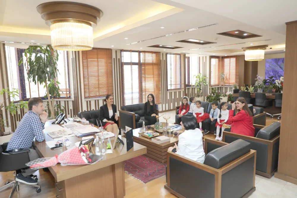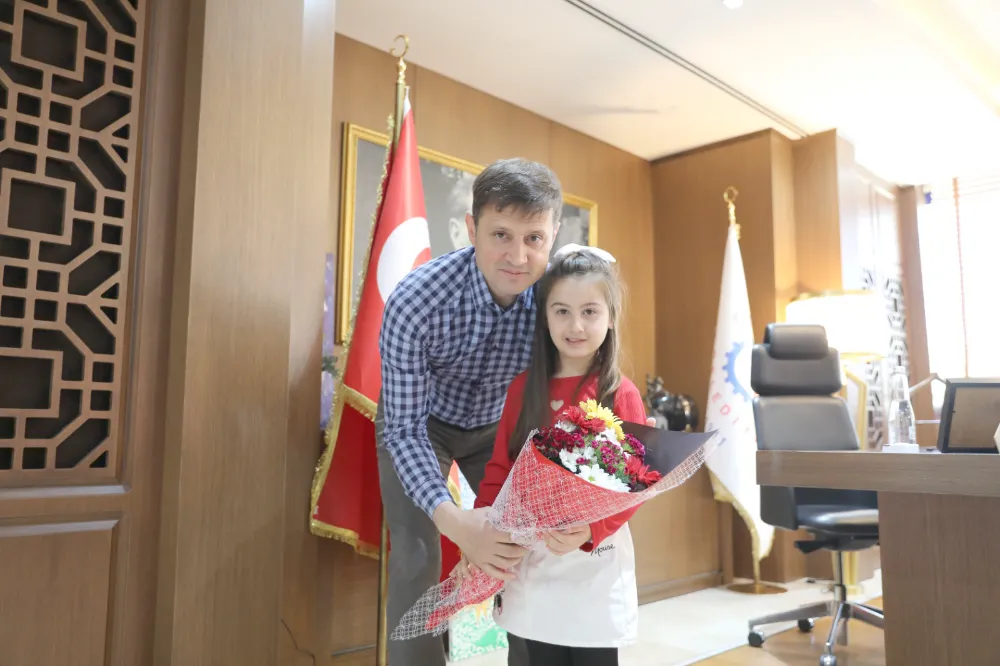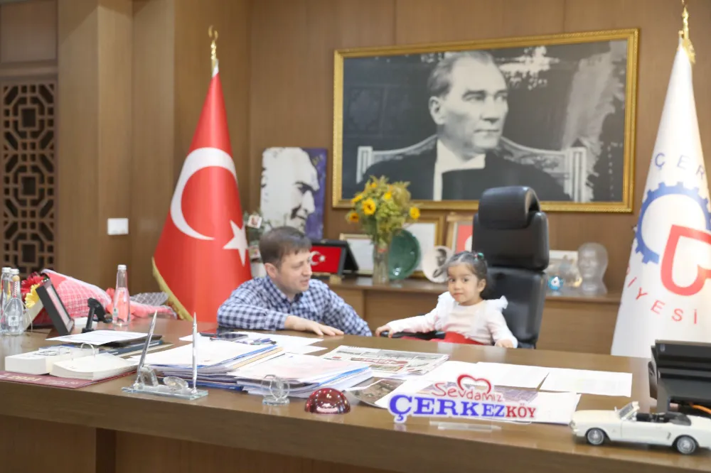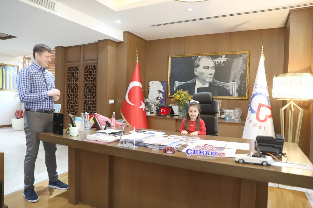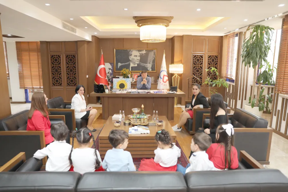 Çerkezköy Özel Mutlu Çocuklar Durağı Anaokulu 23 Nisan Ulusal Egemenlik ve Çocuk Bayramı nedeniyle, Çerkezköy Belediye Başkanı Vahap Akay’ı makamında ziyaret etti.