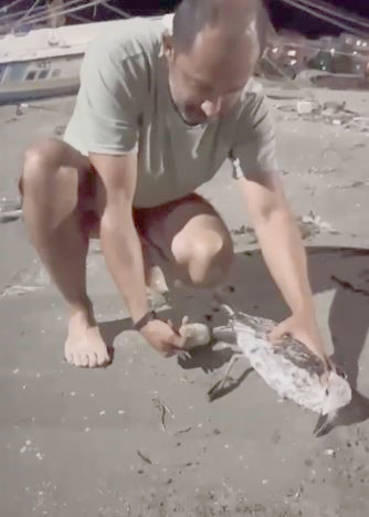 Kurtarılan martı, bir süre kıyıda bekledikten sonra uçarak gözlerden kaybolurken, sosyal medyada hesabından vatandaşlara uyarıda bulunan Gündoğdu, “Kıyıda hareket etmeye çalışıyorken fark ettiğimiz martıyı baştan yavru sandık ama yakınlaşınca, tüm vücuduna misina ve balıkçı iğneleri dolandığını fark ettik. Martının bizden önceki şansı, kıyıya çıkabilmiş olmasıydı. Tüm misinaları temizledikten sonra onu bıraktık. Bir süre gitmeyişi bize teşekkürdü sanırım. Kopan oltalarınızı, köpük, gazete gibi şeylere iğneleri takıp hayvanların ulaşamayacakları yerlere bırakınız. Lütfen dikkat edelim” dedi.