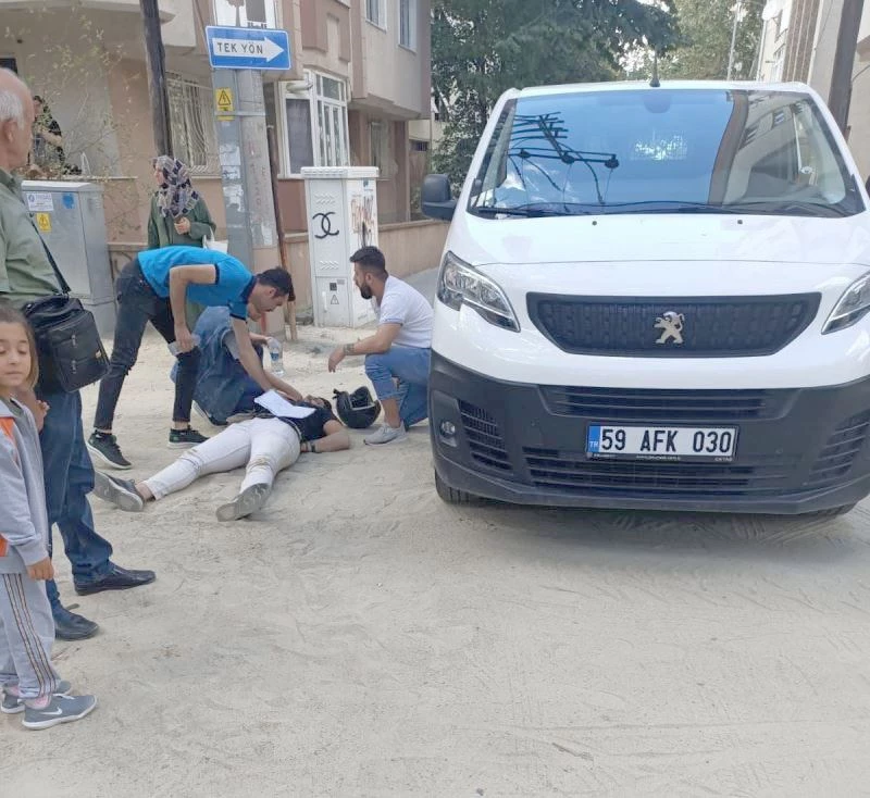 Tekirdağ’ın Çorlu ilçesinde araçla çarpışmamak için frene basan motosikletli kaza yaptı. Devrilen motosikletin sürücüsü yaralandı.