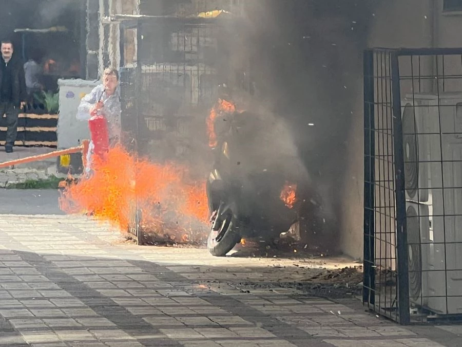 Tekirdağ Muratlı'da İddiaya göre; henüz nedeni belirlenemeyen şekilde geri dönüşüm konteynırı ve yanında park halindeki motosiklet alev aldı. Durumu gören çevre esnafın yangın tüpü ile koşarak yangına müdahalesi sonrası önce motosiklet, ardından geri dönüşüm konteynırındaki alevler civara sıçramadan söndürüldü. Bölgeye gelen itfaiye ekipleri de soğutma çalışması yaptı.