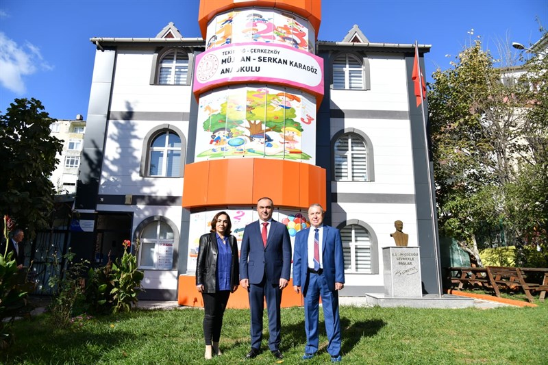 Tekirdağ Valisi Recep Soytürk, Çerkezköy ziyareti kapsamında Müjgan Serkan Karagöz çifti tarafından yaptırılan ve 2023 yılında Tekirdağ Valiliği Yatırım İzleme ve Koordinasyon Başkanlığı tarafından güçlendirmesi yapılan Müjgan Serkan Karagöz Anaokulunu ziyaret etti.