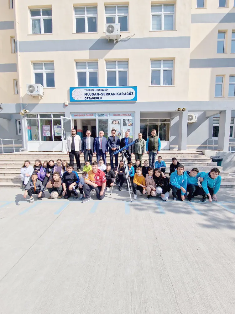 Çerkezköy Müjgan Serkan Karagöz Ortaokulu hayırseverleri Müjgan Karagöz ve Serkan Karagöz aracılığı ile Op. Dr. Soner Karali öğrencilerin projeler için ihtiyaç duyduğu teleskobu okula hediye etti.