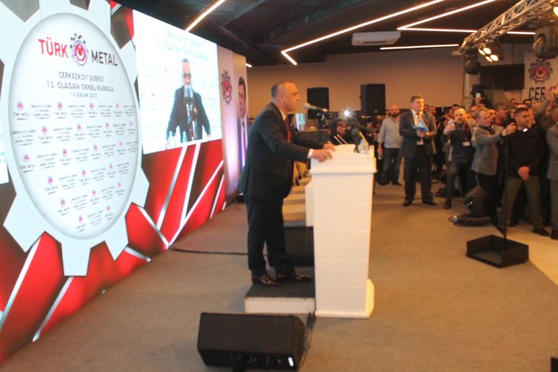 Türk Metal Sendikası Çerkezköy Şubesi,13. Olağan Kongresi'ni bugün yaptı. Kongrede delegelerin tümünün oyunu alan Şube Başkanı Murat Koçak, bir kez daha başkanlığa seçildi. Yoğun katılımın olduğu kongreye Türk Metal Sendikası Genel Başkanı Pevrul Kavlak da katıldı. Kavlak, yaptığı konuşmada önemli mesajlar verdi.