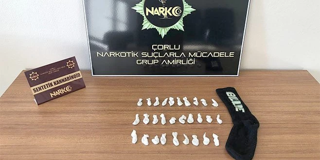 Tekirdağ İl Emniyet Müdürlüğü Narkotik Suçlarla Mücadele Şubesi Çorlu Grup Amirliğince Çorlu İlçesi Hıdırağa (Kore) Mahallesi?nde uyuşturucu ve uyarıcı madde ticareti yapan şahıslara yönelik operasyon düzenlendi. Operasyonda F.Ş.?nin ikametinde ve eklentilerinde arama yapıldı. Polis ekipleri eviç içerisinin yanı sıra çatıda ve kiremitlerin arasında da arama yaptı. Çatıda yapılan aramada soba bacasında gizlenmiş çorabın içerisinde uyuşturucu bulundu. Çorabın içerisinde fişeklenmiş halde 29 fişek daralı 20.40 gram uyuşturucu maddelerden Sentetik Kannabinoid (Bonzai) maddesi ele geçirilerek muhafaza altına alındı.
