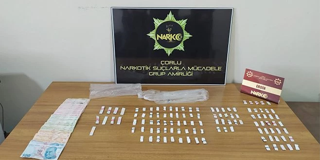 Tekirdağ İl Emniyet Müdürlüğü Narkotik Suçlarla Mücadele Şube Çorlu Grup Amirliği ekiplerince ilçede tespit edilen bir adrese uyuşturucu operasyonu düzenlendi. Adrese ve adreste bulunan R.P., Z.C.E., H.S. ve Y.A.?nın üzerinde yapılan aramada, 111 fişek eroin, uyuşturucu madde ticaretinden elde edildiği değerlendirilen bin 75 TL para ele geçirildi. 4 şahıs, uyuşturucu madde ticareti yapmak suçundan yakalanarak gözaltına alındı.