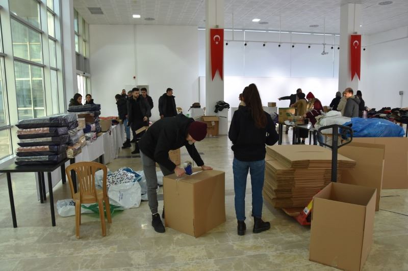 Tekirdağ Namık Kemal Üniversitesi’nde, (NKÜ) Kahramanmaraş Pazarcık merkezli meydana gelen ve pek çok şehri etkileyen deprem felaketi nedeniyle, bölgedeki ihtiyaç sahiplerine ulaştırılmak üzere eldiven, mont, ısıtıcı, ayakkabı, bot, bebek maması ve bezi, temizlik, hijyen ürünleri ve konserve gıda gibi çok sayıda öncelikli ihtiyaç malzemesi toplanıyor.