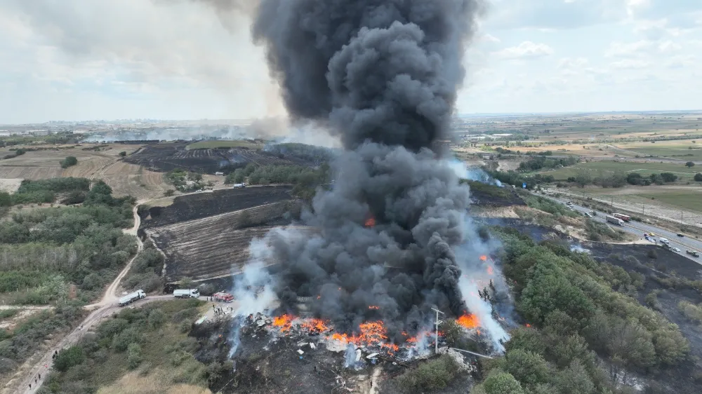 Tekirdağ’ın Ergene ilçesi Velimeşe Mahallesi’nde çıkan otluk yangını, geri dönüşüm tesisine sıçradı. Yangının neden olduğu dumanlar birçok ilçeden görüldü ve yangına müdahale çalışmaları sürüyor. Yangın dron ile havadan da görüntülendi. Yangın ekiplerin yoğun çalışması sonucu büyük oranda kontrol altına alındı.