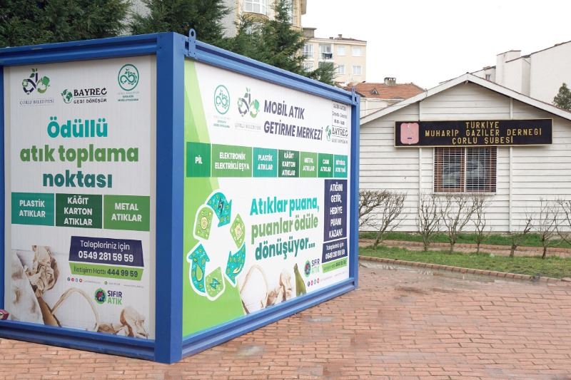 Çorlu Belediyesi tarafından ‘Sıfır Atık’ projesi kapsamında hizmete sunulan ‘Ödüllü Mobil Atık Merkezi’ uygulaması üç ayrı mahallede hizmete girdi. Mobil merkezlere getirilen atıklar ödüle dönüşüyor.