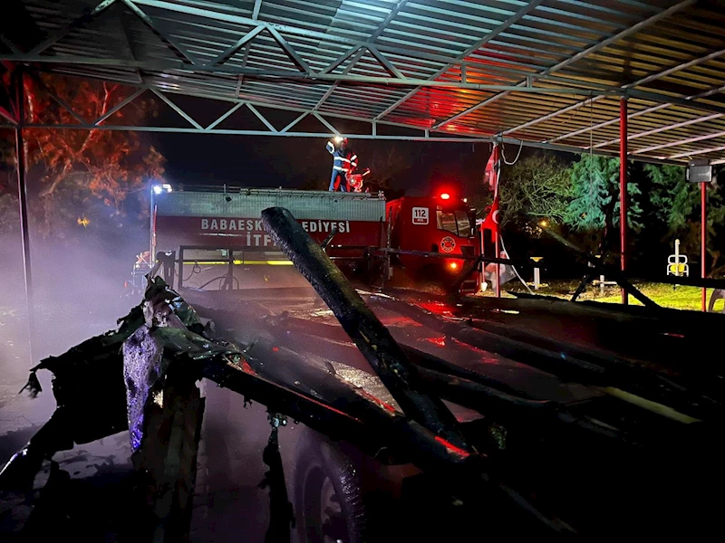 Haber verilmesi üzerine bölgeye itfaiye ekipleri sevk edildi. Ekiplerin müdahalesi ile söndürülen yangında römork kullanılamaz hale geldi.
