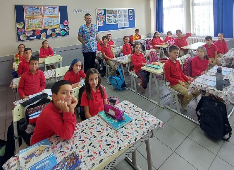 Çorlu Belediye Başkanı Ahmet Sarıkurt da, 75. Yıl Mustafa Kemal İlkokulu'nda düzenlenen eğitim sunumuna katılarak öğrencilere eşlik etti ve sunumun ardından onlarla sohbet etti.