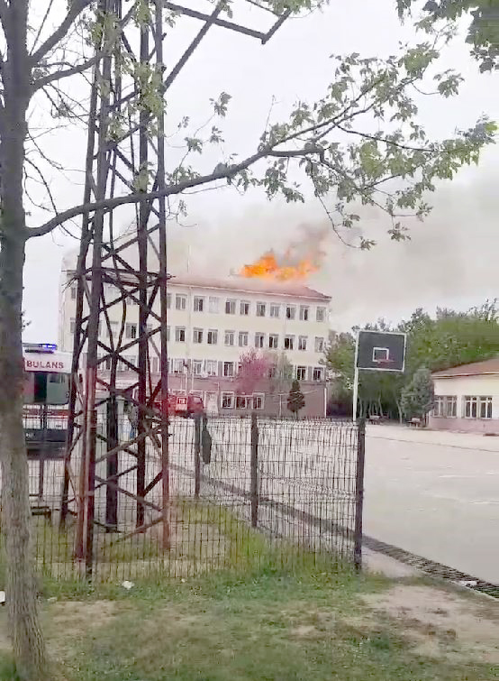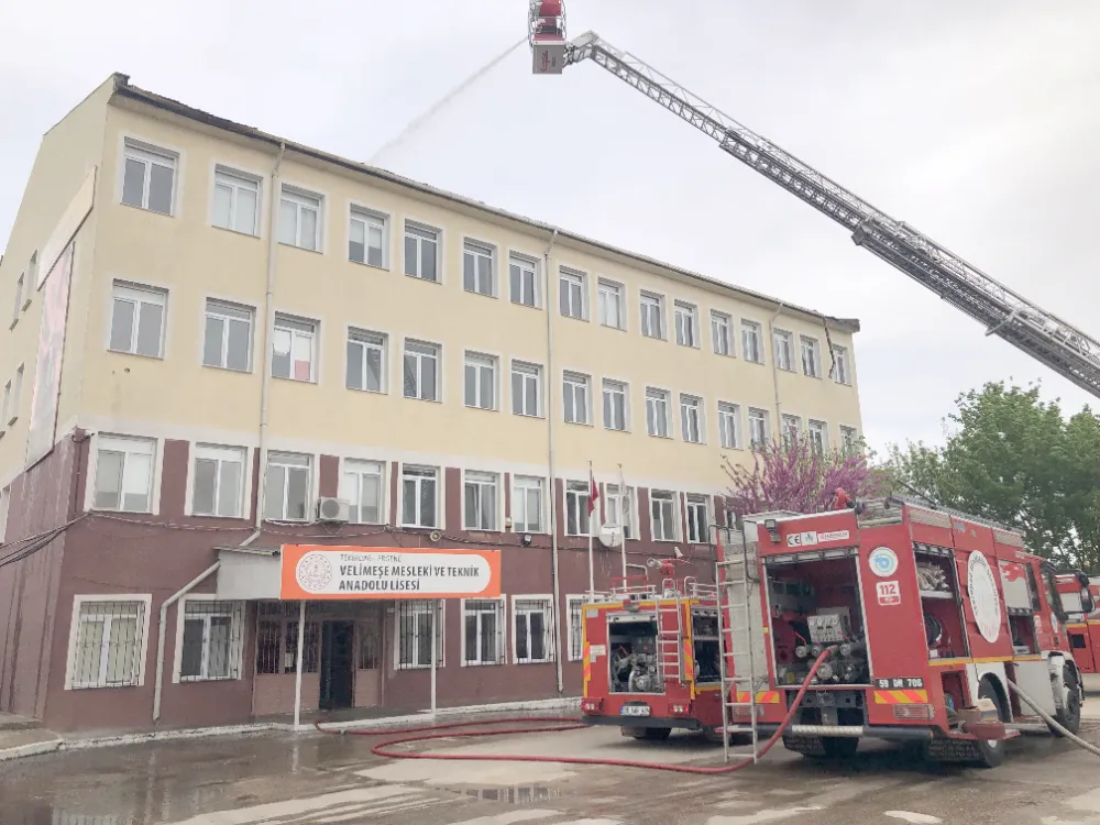 Tekirdağ’ın Ergene ilçesinde Velimeşe Mesleki ve Teknik Anadolu Lisesi binasının çatısında yangın çıktı.