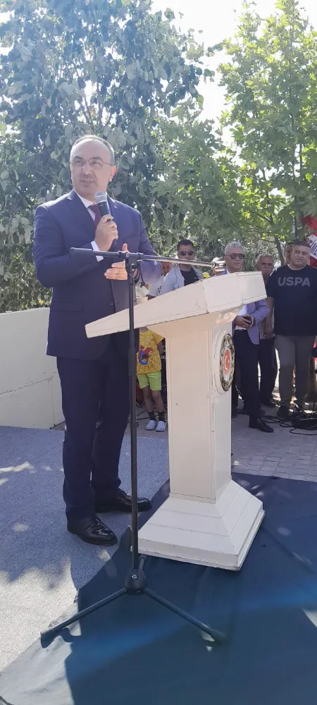 Temel atma töreninde son konuşmayı yapan Vali Recep Soytürk ise, “Serkan ve Müjgan Karagöz çiftini tebrik diyorum. Bu hayırlarının devamını diliyorum. 32 yıllık çalıştığım süre boyunca birtakım hayırseverler gördüm bunlar hayır yapmayı çok seviyorlar, birtakım insanlar da gördüm onlar da hayra davet etmeyi çok seviyorlar. Hayra davet edenler işi ucuza getiriyor. Ceplerinden bir kuruş para çıkmadan hayır yapan kadar sevap kazanıyor. Ama bir kısım ki çok azdır, Serkan Bey ve Müjgan Hanım öyle hem kendileri hayır yapıyorlar hem de davet ediyorlar. Buraya ilk geldiğimde Kaymakam Beyle birlikte buradaki hayır yapan hayırseverlerle bir araya gelip onlara bir teşekkür edelim istedik. Tam 33 kişiyle kahvaltıda buluştuk. Çerkezköy’de 33 aile, 33 kişi ve kurum hayırseverlik yapmış okul bağışlamış. Bu hayırseverler arasında Serkan Bey ve Müjgan Hanım da vardı. Onlar hem hala hayır yapmaya hem de hala başkalarını hayra davet etmeye devam ediyorlar. Camimiz hayırlara vesile olsun.”dedi.