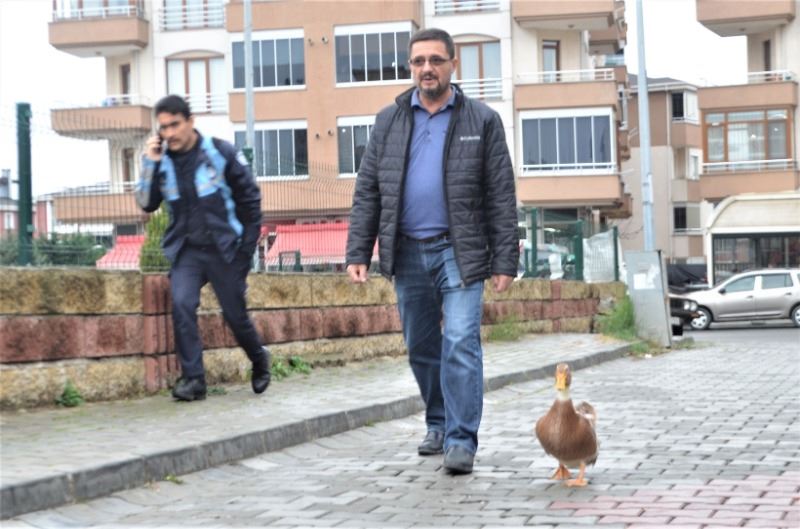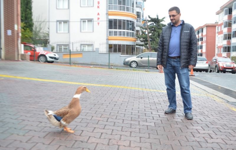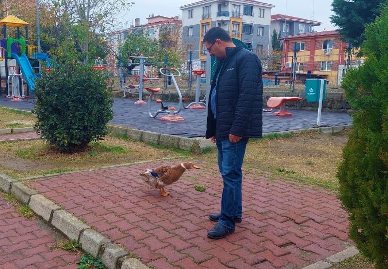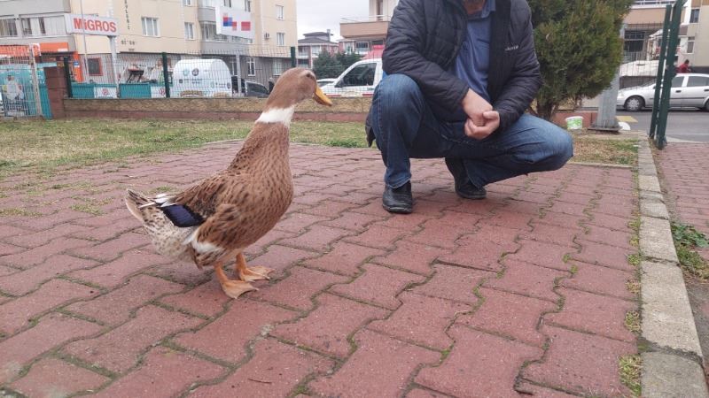 Tekirdağ’ın Süleymanpaşa ilçesinde sahibine alışan ördek, sokak park demeden her yere sahibinin peşinden gidiyor. Dışarı çıkmayınca sinirlenen Duman ördek, sahibine yaklaşan olunca ise huysuzluğunu gizleyemiyor.
