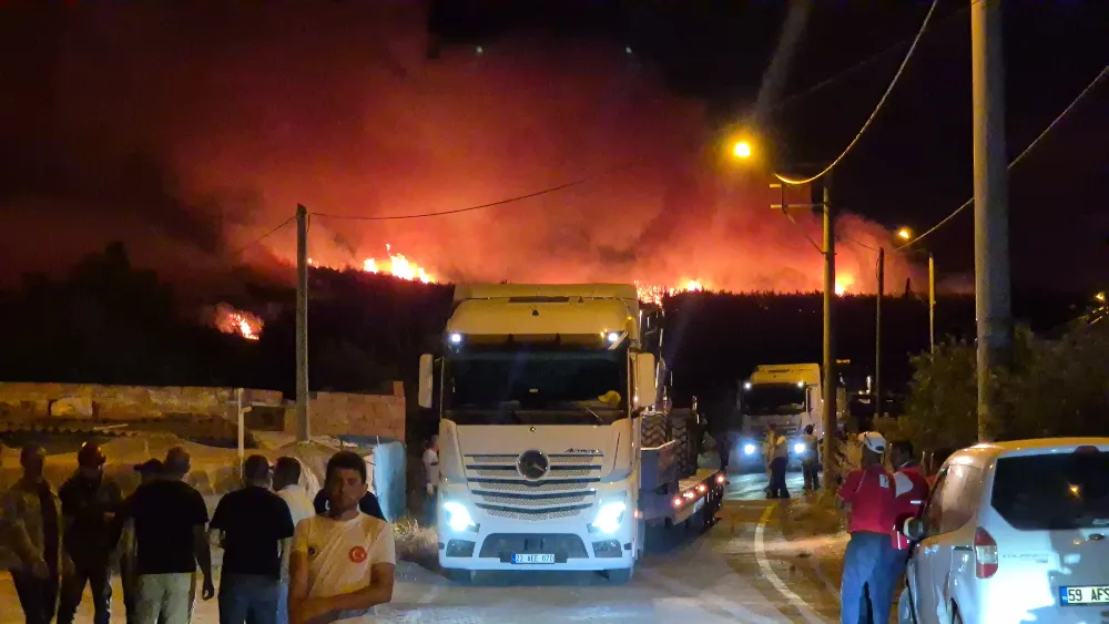 Şarköy ilçesine bağlı kırsal bölgelerde dün saat 14.00 sıralarında başlayan orman yangını, rüzgarın etkisiyle hızla yayıldı. Yangın, Kızılcaterzi Mahallesi’ne kadar ilerleyerek evleri tehdit etmeye devam ediyor. Alevlerin mahalleye yaklaşmasıyla birlikte bölge adeta gündüze dönerken, köy tedbir amaçlı tahliye edildi.