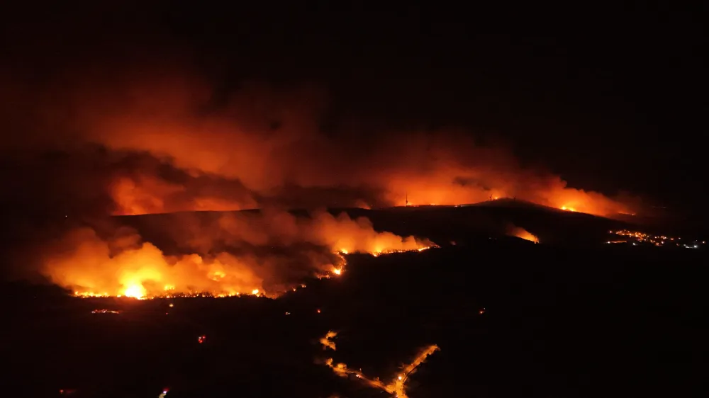 Tekirdağ’ın Şarköy ilçesinde dün başlayan orman yangını sürerken, alevlerin tehdit ettiği 3 köy boşaltıldı. Geceyi gündüze çeviren alevler dron ile havadan görüntülendi.