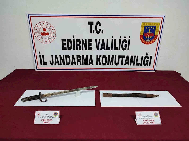 Edirne’de İl Jandarma Komutanlığı Kaçakçılık ve Organize Suçlarla Mücadele (KOM) Şube Müdürlüğü ekiplerince bir şahsın üzerinde yapılan arama sonucunda, Osmanlı dönemine ait 150 yıllık kılıç ve kını ele geçirildi.