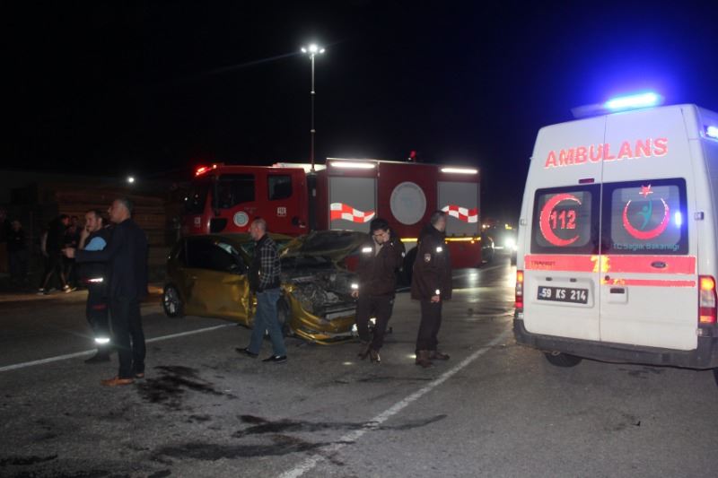 Kaza, 21.00 sıralarında Saray ilçesi Büyükyoncalı Mahallesi’nde meydana geldi. Alınan bilgiye göre, Saray’dan Kapaklı ilçesi istikametine seyreden İhsan D. idaresindeki 34 DLJ 312 plakalı otomobil ile karşı yönden gelen Mustafa T. idaresindeki 59 AAE 202 plakalı hafif ticari araç Yeniköy çıkışında kafa kafaya çarpıştı. Meydana gelen kaza sonucu 34 DLJ 312 plakalı otomobilin sürücüsü ile aynı otomobilde bulunan Dicle İ., Deniz Ş. ile 59 AAE 202 plakalı hafif ticari araç sürücüsü Mustafa T. ve araçta bulunan Sadık T., Kıymet T., Aysel İ. ile İren İ. yaralandı. Kaza yerine çok sayıda ambulans ve itfaiye ekibi sevk edildi. Kaza sonucu hurdaya dönen araçlardan çıkarılan yaralılar 112 Acil Servis ekipleri tarafından olay yerinde yapılan ilk müdahalelerinin ardından Kapaklı ve Çerkezköy Devlet Hastanelerine kaldırıldı.