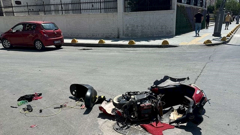 Kazada kullanılmaz hale gelen elektrikli motosiklet çekici ile kaldırılırken, polis ekipleri olayla ilgili inceleme başlattı.