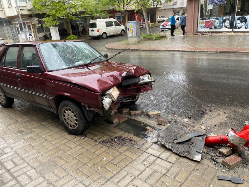 Tekirdağ’ın Çorlu ilçesinde sürücüsünün direksiyon hakimiyetinin kaybettiği otomobil, yol kenarındaki yangın hidrantına çarptı. Kazada 2 kişi yaralanırken, yangın musluğunun kopması sebebiyle yol göle döndü.