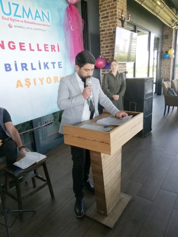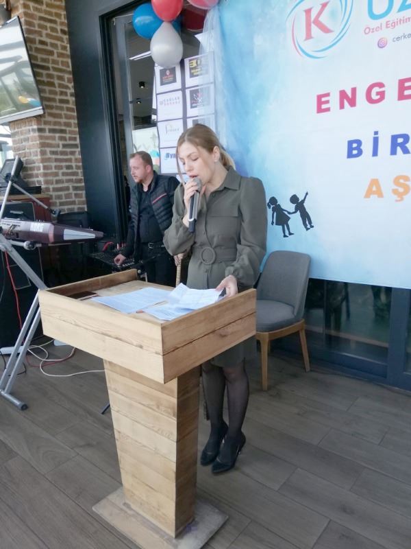 Programda bir konuşma yapan Çerkezköy Uzman özel Eğitim ve Rehabilitasyon Merkezi Sahibi Savaş Kapçak, “Özel çocuklarımızla özel günümüze hepiniz hoş geldiniz.”dedi. Kapçak, daha sonra İlçe Milli Eğitim Müdürü Hüseyin Gümüş ve şube müdürleriyle diğer davetlilere katılımlarından ötürü teşekkür etti. “Bugün burada içinde bulunduğumuz haftanın engelliler haftası olması sebebiyle toplanmış bulunmaktayız.” diyen Kapçak, sözlerini şöyle sürdürdü: “Bu hafta sadece ülkemizde değil Birleşmiş Milletlere üye 156 ülkede kutlanmaktadır. Hafta boyunca engellilerin soranları tartışılır, topluma kazandırılmaları konularında çalışmalar yapılır. Toplumda farkındalık oluşturmak, onlara gerekli desteği vermek, onların da hakları olduğunu bilerek yaşamak hepimizin sorumlulukları arasındadır. İnsanlar bir birinden farklı olabilir fakat eşit haklara sahiptir. Engelli bireyleri yapamadıklarıyla değil yapabildikleriyle ve bizlere benzeyen yanlarıyla görmek gerekir. Onların acıma duygusuna değil sevgi ve anlayışa ihtiyacı vardır.”