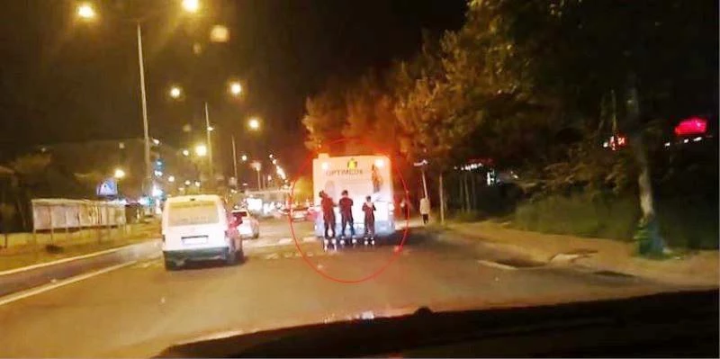 Tekirdağ’ın Çorlu ilçesinde halk otobüsünün arkasına tutunarak yolculuk etmeye çalışan patenci gençler, kazaya davetiye çıkardı. Tepki çeken görüntüler, bir vatandaşın telefon kamerasına yansıdı.