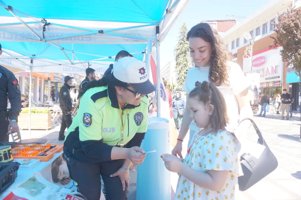 Edirne İl Emniyet Müdürlüğü ekipleri tarafından kentin en işlek noktalarından olan Saraçlar Caddesi’nde açılan stantlarda vatandaşlara hem çeşitli hediyeler, hem