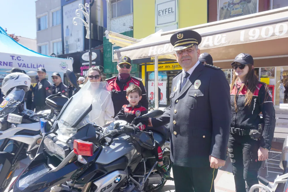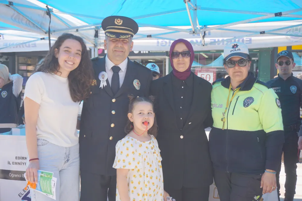 de bilgilendirici afiş ve broşürler dağıtıldı. Stantları ziyaret eden vatandaşlar, çocuklarını polis ekiplerinin motosikletleri ve araçlarına bindirerek hatıra fotoğrafı çektirdi. Caddeye kurulan LED ekranda ise emniyetin yaptığı faaliyetler gösterime sunuldu. Stantları tek tek dolaşan Edirne İl Emniyet Müdürü Onur Karaburun, ekiplerden çalışmalarla ilgili bilgi aldı. Etkinlikte Müdür Karaburun’a eşi ve aynı zamanda Polis Eşleri Derneği Edirne Şubesi Başkanı Aynur Karaburun ile çocukları da eşlik etti.