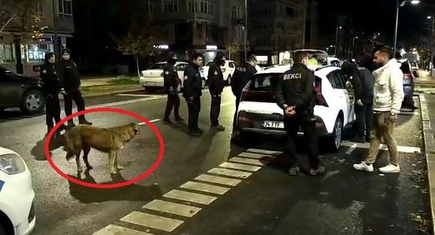 Polis ekipleri araçta arama yaptığı esnada, o saatlerde sokakta dolaşan 2 sokak köpeği de araca yanaşarak polisin operasyonunu baştan sona kadar izlemesi dikkatlerden kaçmadı. Uzun süre arama yapılan aracı izleyen 2 sokak köpeği, uyuşturucu aranılan araçta mama benzeri yiyecek çıkacağını umarak dakikalarca operasyonu izledi. Polis ekipleri şüphelileri emniyete götürürken, araçtan ekmek yerine uyuşturucu çıkınca köpeklerde uzaklaşıp gözlerden kayboldular.