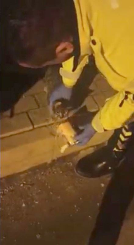 Kırklareli’nin Pınarhisar ilçesinde bir yavru kedinin kafası konserve kutusuna sıkıştı. Aynı bölgede uygulama yapan ilçe Emniyet Müdürlüğü polis ekipleri kediyi fark etti. Ekipler yavru kedinin kafasındaki konserve kutusunu çıkarmak için harekete geçti. Ekiplerin uğraşının ardından konserve kutusu yavru kedinin kafasından çıktı. O anlar telefon kamerasına yansıdı.