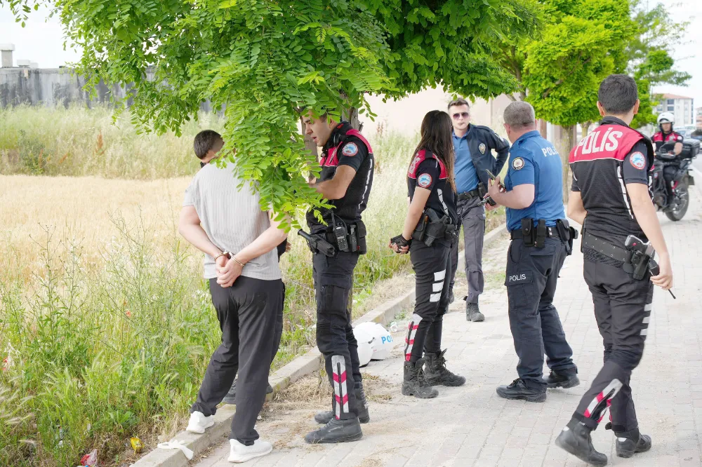 Yunus polisleri tarafından yaşanan kovalamaca sonucu, 22 ADB 100 plakalı otomobilde yakalanan şüpheli sürücü M.N. ve yanında yolcu olarak bulunan B.Ç. gözaltına alındı.