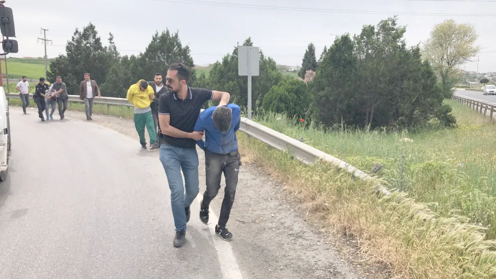 Polis ekipleri, Fatih Caddesi’nden Çerkezköy yoluna sapan aracın peşini bırakmadı. Çevre yolundan Ergene ilçesi bağlantı yoluna giren otomobil, virajı alamayarak bariyerlere çarptı. Kaza sonrası otomobilden atlayan 3 şahıs, yaya olarak kaçmaya başladı. Yaya olarak şahısların peşine düşen devriye ve asayiş ekipleri, 3 şüpheliyi soluk soluğa yaşanan kovalamaca sonrası yakalamayı başardı.