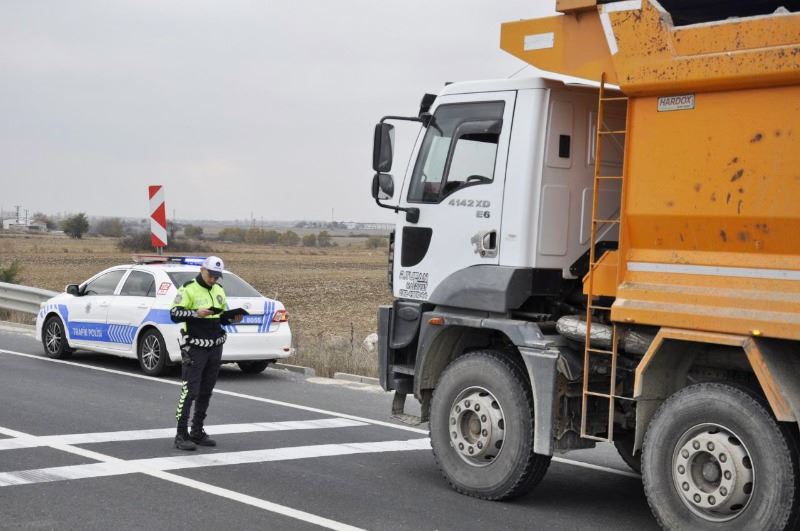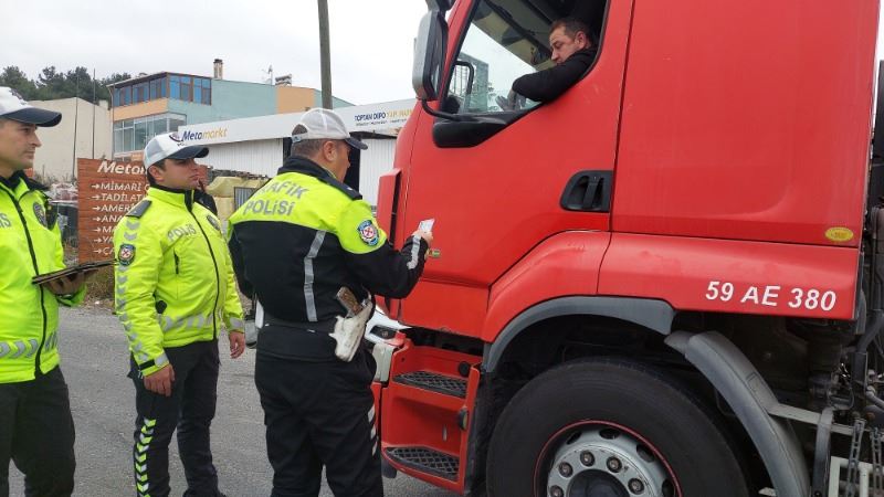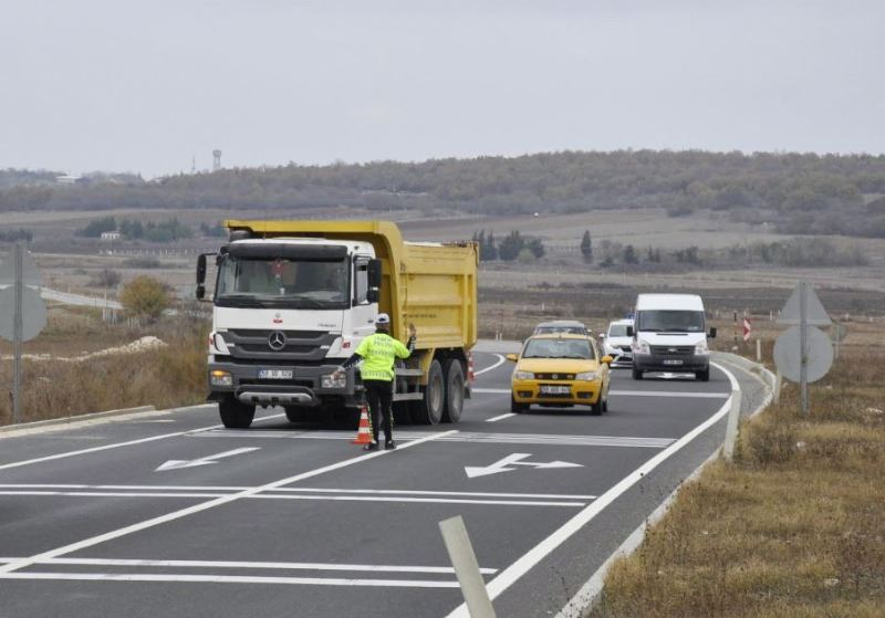 Kamyon, tır ve kamyonet gibi yük taşımacılığı yapan araçları tek tek durdurarak denetleyen trafik ekipleri; ilk olarak ehliyet, ruhsat ve yeterlilik belgesi kontrolü gerçekleştirdi. Ardından araç üzerinde denetleme yapan ekipler; plaka, motor şase, branda çekme ve yük kontrolü yaptı. Yapılan denetimlerde, yasal kapasiteden fazla yük taşıyan ve fenni muayenesi olamayan araç sürücülerine cezai işlem uygulandı.