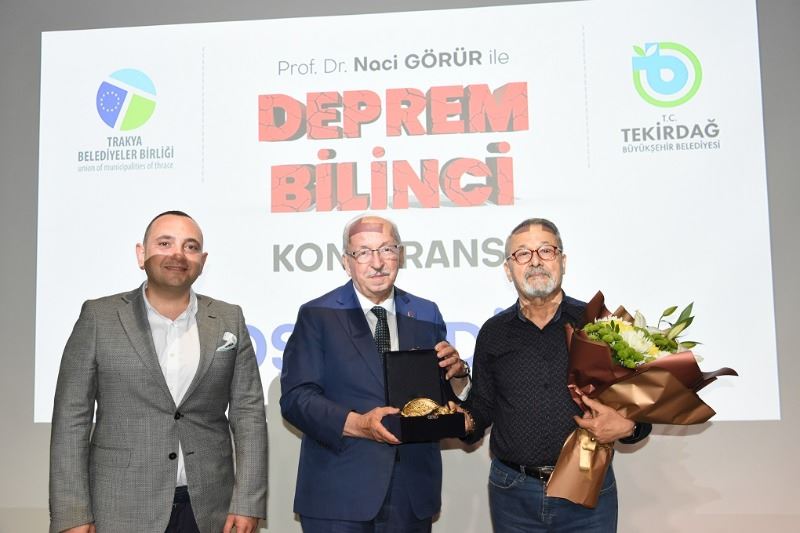 Tekirdağ’ın deprem bölgesinde yer aldığı gerçeğinden hareketle depreme hazırlık çalışmalarını aralıksız sürdüren Tekirdağ Büyükşehir Belediyesi ve Trakya Belediyeler Birliği’nin işbirliği ile düzenlenen program kapsamında Tekirdağ’a gelen Deprem Bilimci Jeolog Prof. Dr. Naci Görür’ün verdiği ‘Deprem Bilinci’ Konferansı, Tekirdağ Büyükşehir Belediyesi Yılmaz İçöz Sahnesi’nde geniş çaplı bir katılımla gerçekleştirildi.