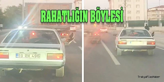 Kapaklı ilçesinin Cumhuriyet Mahallesi Mithatpaşa Caddesi?nde meydana gelen olay, görenleri gülümsetti. Cadde üzerinde seyreden bir araçtaki yolcu, rahat hissetmek için ayaklarını otomobilin penceresinden dışarı uzattı. Bu şekilde seyahat eden yolcu, vatandaşlar tarafından cep telefonu kamerası ile görüntülendi. Görüntüleri görenler ise ?rahatlığın böylesi? yorumunu yaptı.