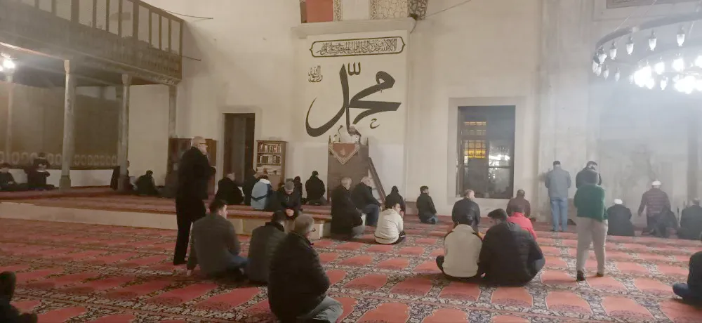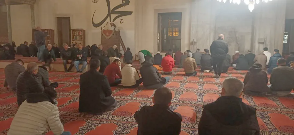 Yatsı namazı öncesinde asırlık camiye gelen insanlar saflarda yerini aldı. Genç yaşlı yüzlerce insan, yatsı namazını eda ettikten sonra teravih namazını kıldı. Kılınan namaz sonrası vatandaşlar yapılan dua sonrası dağıldılar.